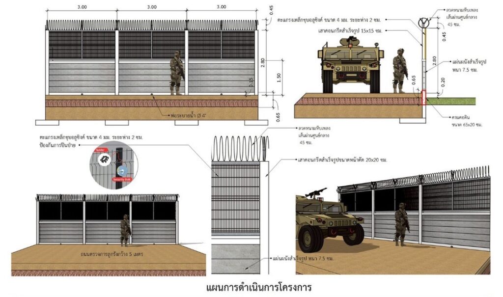 บก.กองทัพไทย โดยหน่วยบัญชาการทหารพัฒนา เผยต้นแบบ “รั้วชายแดนไทย–กัมพูชา” รูปแบบใหม่ ใช้วัสดุคอนกรีตสำเร็จรูปและระบบป้องกันมาตรฐานสูง เพื่อเพิ่มประสิทธิภาพในการดูแลพื้นที่ชายแดนและป้องกันการลักลอบเข้า–ออกประเทศ