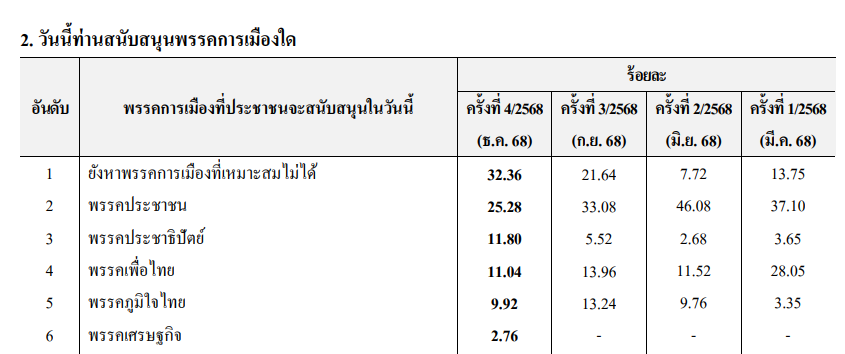 ปี 2568 ในการสำรวจครั้งที่ 4 จบลงด้วยกราฟ “Downtrend” ของสองขั้วอำนาจหลัก ที่สูญเสียโมเมนตัมทางการเมืองไปอย่างชัดเจน