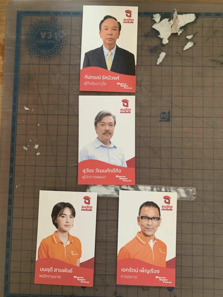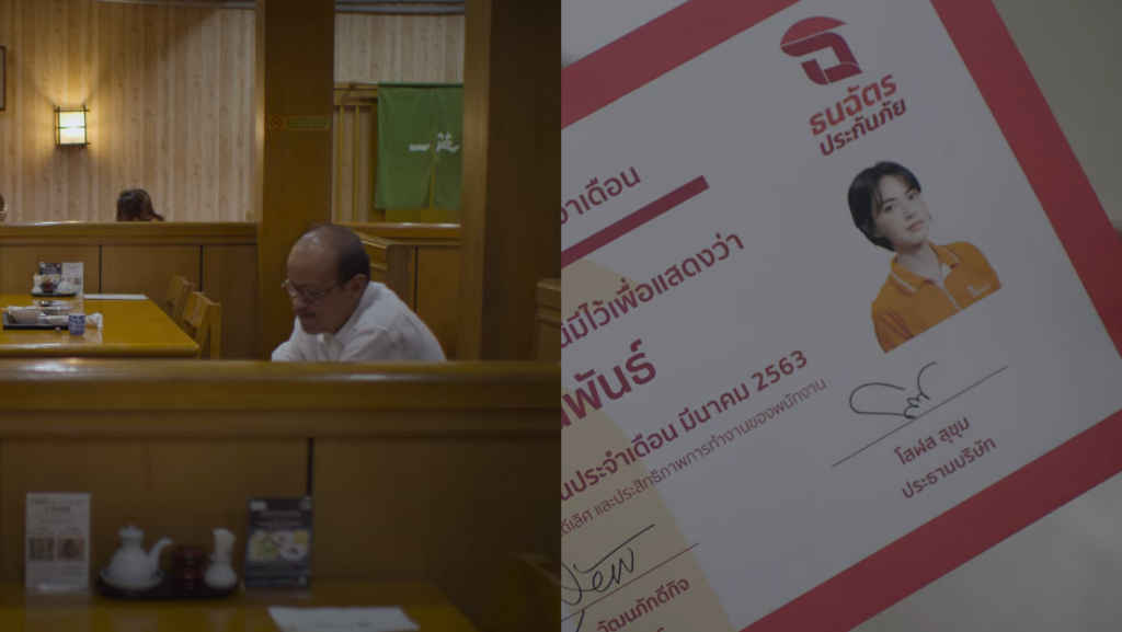 – ที่บัตรพนักงานของ ‘ธนฉัตร ประกันภัย’ มีสโลแกนบริษัทอยู่มุมขวาล่างว่า “Whenever Together Forever”