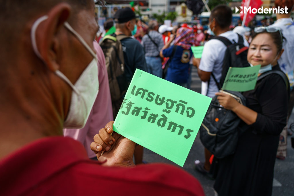 “… ผมว่าประชาชนได้บทเรียนแล้ว ได้บทเรียนเรื่องรวยกระจุกจนกระจาย เมื่อก่อนคนไทยเวลาเจอหน้ากันจะทักว่า ‘ไปไหนมา? สบายดีหรือ?’ แต่ตอนนี้กลายเป็น ‘กินข้าวรึยัง? มีเงินใช่รึเปล่า’ ผมว่าแค่นี้มันก็เปลี่ยนจากหน้ามือเป็นหลังตีนแล้วนะ”