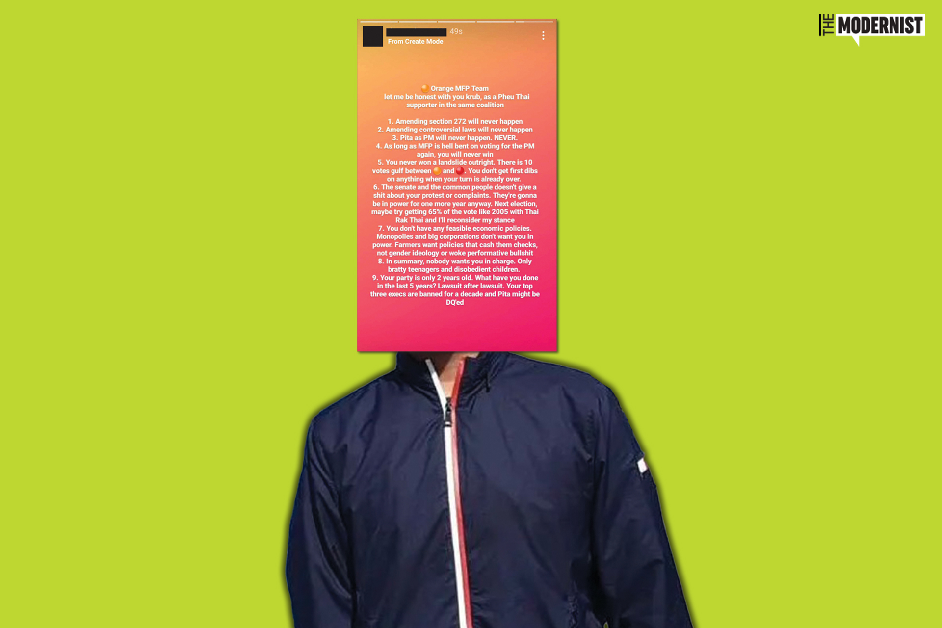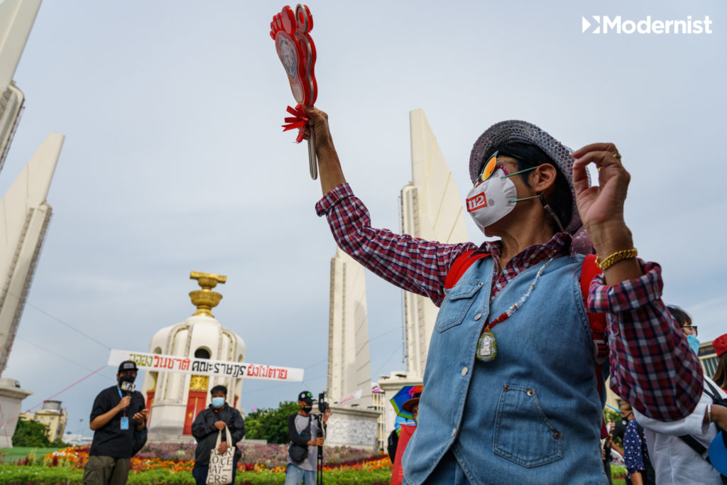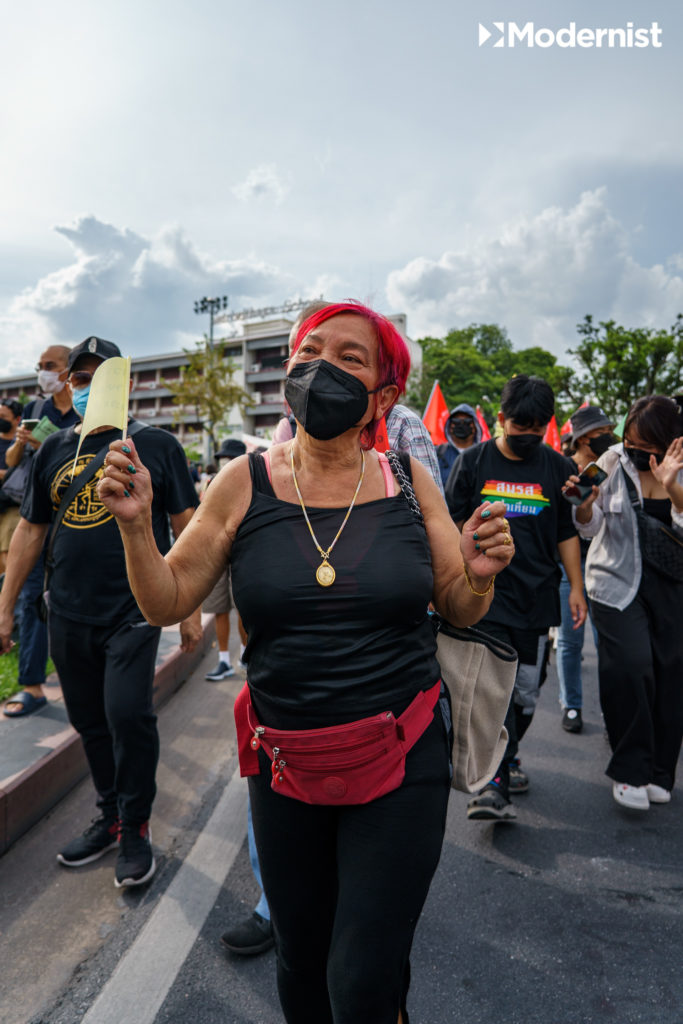 “แต่ถ้าเป็นการเรียกร้องหรืออะไรเกี่ยวกับทางการเมืองที่แบบ… เหมือนกับเราไล่ประยุทธ์อะไรแบบนี้ ที่นี่มันไม่ได้มีความหมายอ่ะ”