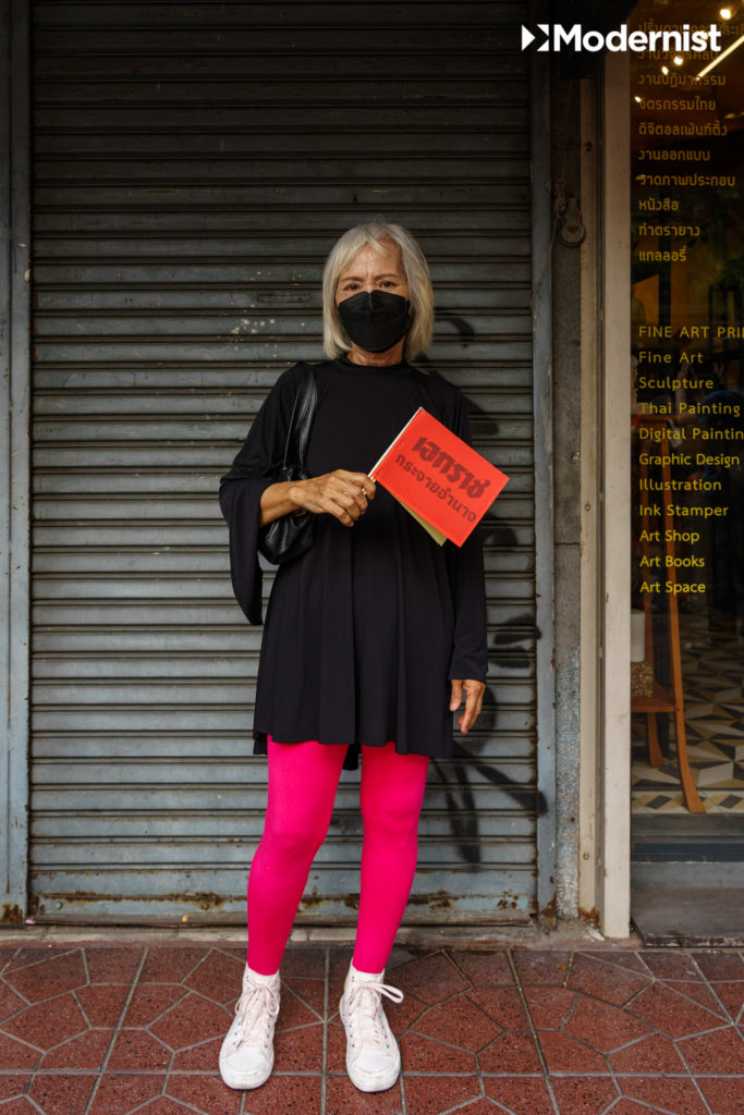 อย่างที่บอกไปว่าอากาศมันร้อนโคตร ๆ ด้วยความที่วิ่งไปวิ่งมาทำให้มาสก์ชุ่มไปด้วยเหงื่อ ผมเลยถอดมาสก์ออก พอถ่ายไปซักพักคุณป้าในรูปเขาก็เดินมาหาพร้อมบอกว่า