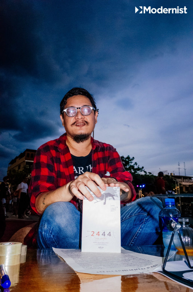 พอคุยกับพี่วัฒน์เสร็จ หันไปข้าง ๆ เป็นโต๊ะคุยหนังสือของกลุ่มเครือข่ายกวีสามัญสำนึก ผมเข้าไปร่วมวงในขณะที่พี่คนนี้กำลังรีวิวหนังสือในมืออย่างเผ็ดร้อนอยู่พอดี