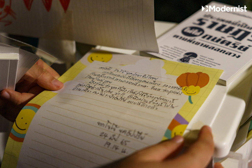 หลากคน หลากความฝัน หลากจินตนาการถึงชีวิตที่มีความสุขในสังคมประชาธิปไตยที่เหมือนกับโลกในฝันตามคำที่ใครต่อใครชอบพูดว่า “ถ้าการเมืองดี …ก็จะดี” บ้างก็เขียนจดหมายระบายความรู้สึกของตัวเองที่มีในตอนนี้อย่างจดหมายในภาพที่แอบอ่านแล้วก็รู้สึกตามไปด้วย