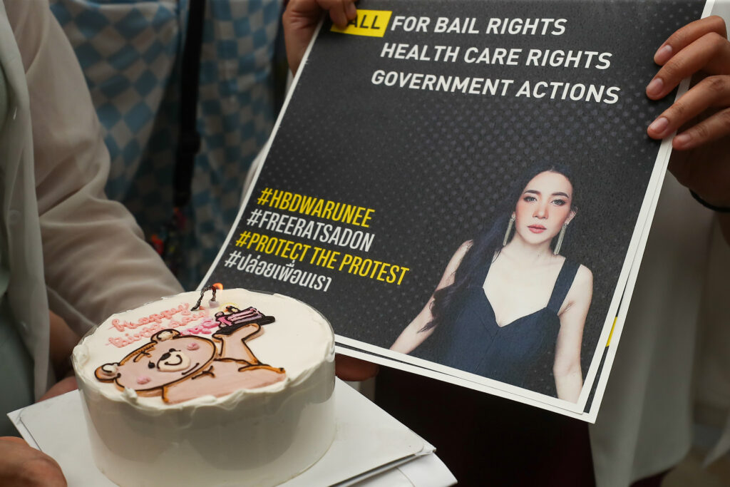 โดยระหว่างทำกิจกรรมเชิงสัญลักษณ์เพื่อเรียกร้องสิทธิการประกันตัว ได้มีการจัดกิจกรรมครบรอบวันเกิดให้กับ ‘วารุณี’ (สงวนนามสกุล) ผู้ต้องหาคดีมาตรา 112 ที่มีอายุครบ 32 ปีบริบูรณ์ด้วย โดยมีน้องสาว เพื่อนของวารุณี และนักกิจกรรมร่วมกันจุดเทียน เป่าเค้ก และร้องเพลง Happy Birthday ให้กับวารุณีที่ยังอยู่ในเรือนจำ