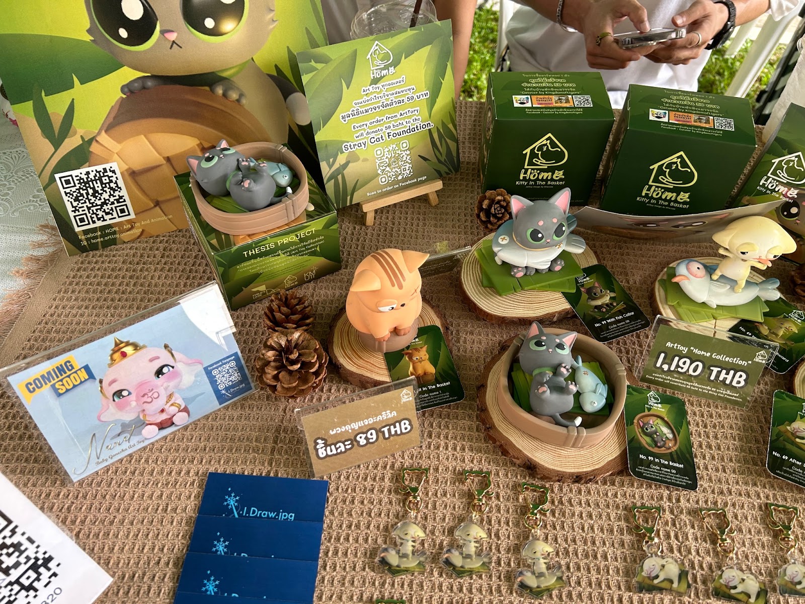 Playground Studio ซึ่งเป็นหนึ่งในสตูดิโอที่มาร่วมงานนี้บอกกับเราว่า โจทย์กาชาปองแมวสำหรับพวกเขาคือการดูแลแมวป่วยตามวิธีที่ถูกต้อง ส่วน I.draw.jpg นำผลงานต่อยอดจากธีสิสเรียนจบอย่างอาร์ตทอยแมวและปลาทูมาเพื่อหารายได้ส่วนหนึ่งช่วยเหลือแมวจรไร้บ้านด้วย กระนั้น ก็ยังมีงานอาร์ตทอยอื่น ๆ ที่น่าสนใจ อย่างเพจ “มหาภารตะ” ที่นำกาชาปองตัวละครพี่น้องปาณฑพมาจอยน์ในงานนี้ด้วย นอกเหนือจากนี้ ทีมศาลาอันเตยังใช้พื้นที่ส่วนหนึ่งของหออนุสรณ์เจ้าพระยายมราชในการจัด Workshop ที่เกี่ยวข้องกับอาร์ตทอยและงานศิลปะด้วย