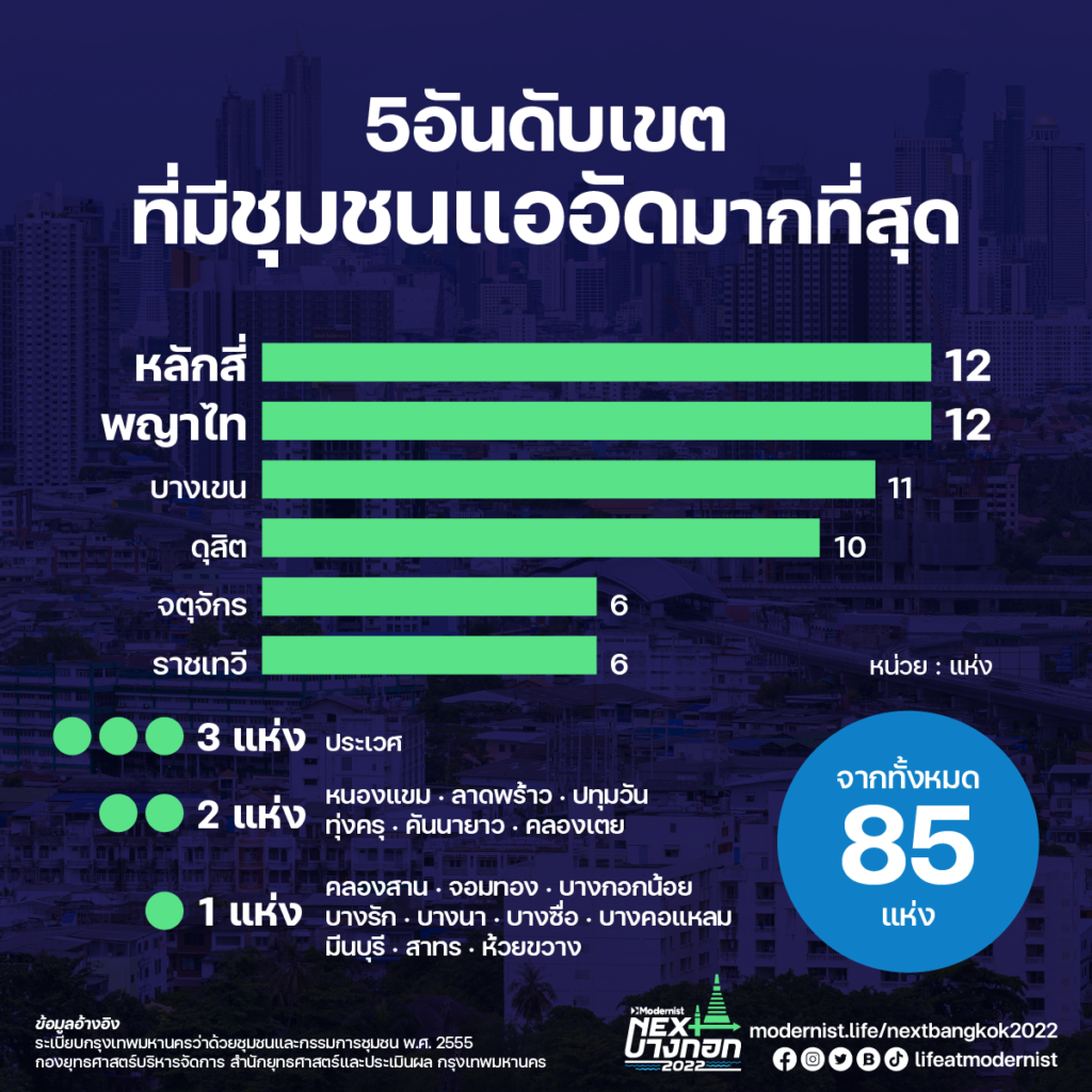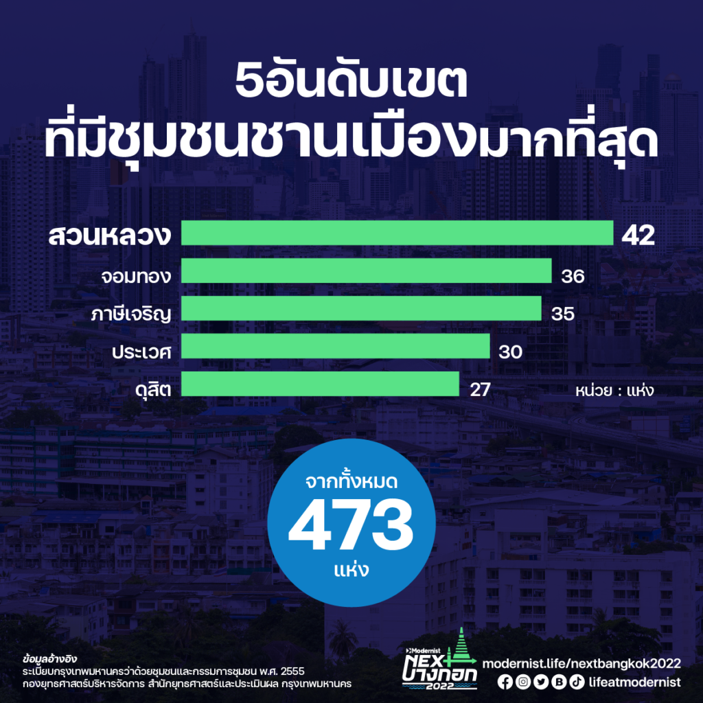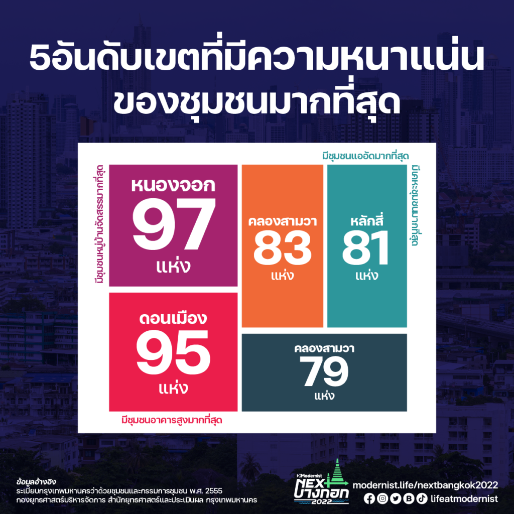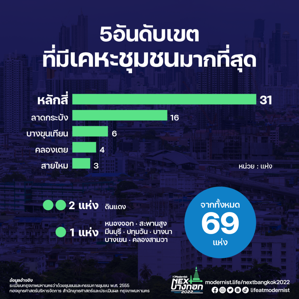 - 5 อันดับเขตที่มีชุมชนแออัดมากที่สุด