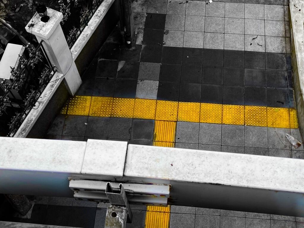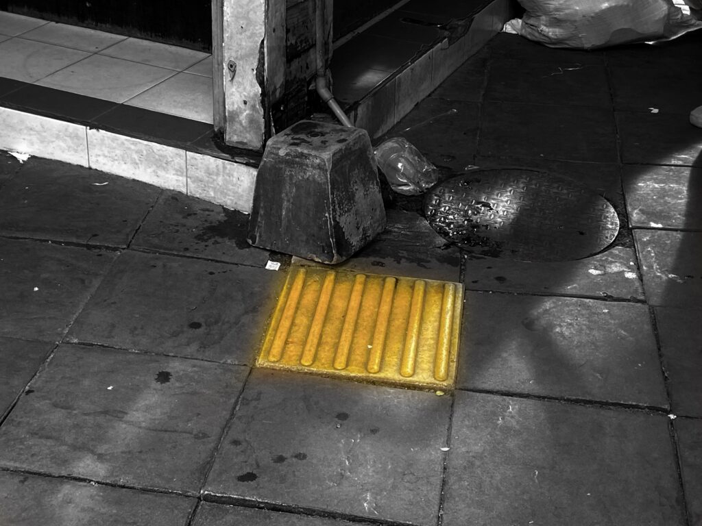 แถมอีกนิด เดินมาเรื่อยๆ ก็ไปเจอกับ ‘เบรลล์บล็อกยืน1’ อยู่ดีๆ ก็โผล่มา ไร้รอยต่อ ไม่อะไรกับใครและใช้งานไม่ได้…