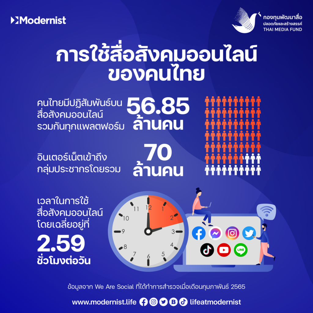 ปัญหาการส่งต่อข้อมูลที่ไม่ตรงกับความเป็นจริงจึงเกิดขึ้นในช่วงสมัยที่เทคโนโลยีรู้จักคำว่า “สื่อสังคมออนไลน์” หรือ SNS (Social Network Services) โดยเฉพาะเทคโนโลยีในการรับส่งข้อมูลที่ไม่ต้องพึ่งพาระบบ SMS (Short Message System) หรือ MMS (Multimedia Message System) โดยเสียค่าใช้จ่ายอีกต่อไป โดยข้อมูลจาก We Are Social ที่ได้ทำการสำรวจไปเมื่อเดือนกุมภาพันธ์ 2565 พบว่าคนไทยมีปฏิสัมพันธ์บนสื่อสังคมออนไลน์รวมกันทุกแพลตฟอร์มมากถึง 56.85 ล้านคน และยังพบว่าอินเตอร์เน็ตเข้าถึงกลุ่มประชากรโดยรวมแล้วถึง 70.01 ล้านคน และใช้เวลาในการใช้สื่อสังคมออนไลน์โดยเฉลี่ยอยู่ที่ 2.59 ชั่วโมงต่อวัน