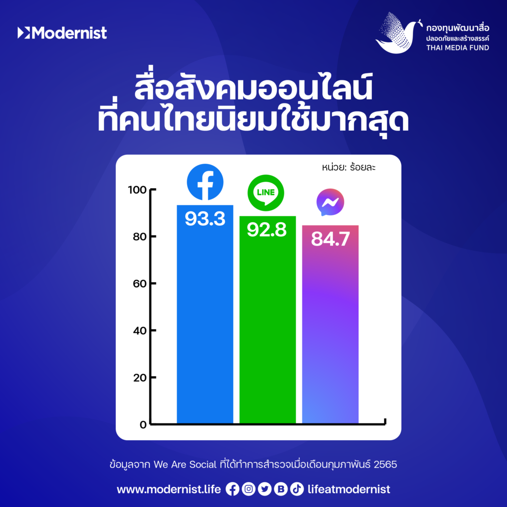 และถ้ามองถึงข้อมูลลงไปจะพบว่าคนไทยใช้ LINE อยู่อันดับที่ 2 (ร้อยละ 92.8) ซึ่งเป็นรองแค่ Facebook เท่านั้น (ร้อยละ 93.3) ในขณะที่อันดับที่ 3 ก็เป็นผู้ให้บริการด้านการรับส่งข้อความอย่าง Facebook Messenger (ร้อยละ 84.7)