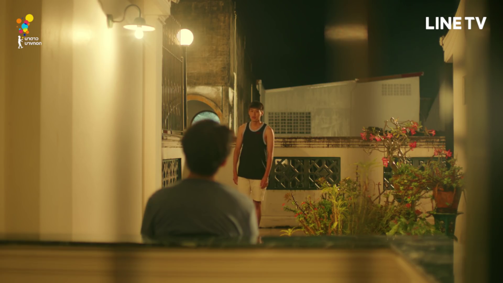 ส่วนฝั่งเต๋เอง ระหว่างที่สับสนไปมาและต้องแบกรับความรู้สึกไว้คนเดียวจนครอบครัวเริ่มสังเกตได้ โกหุ้น (ณัฏฐ์ กิจจริต) จึงเรียกมาคุยบนดาดฟ้าของบ้าน ด้วยประเด็นที่ผิดขนบลูกคนจีนเต็มๆ เต๋เงียบไปนานก่อนจะรวบรวมความกล้าและพูดออกมาด้วยเสียงจากลำขอว่า “เต๋ชอบโอ้เอ๋ว” แล้วเต๋ก็ค่อยๆ ระบายความกลัวและกดดันของตัวเองออกมา