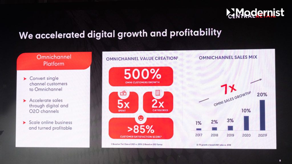 - Reinvent Next-Gen Omni Retail – ยกระดับแพลตฟอร์มออมนิแชแนลผ่านการเชื่อมโลกจริงและโลกเสมือนจริง โดยใช้เทคโนโลยีและดิจิทัลใหม่ ๆ เพื่อมอบประสบการณ์การช้อปปิ้งเหนือระดับในทุกกลุ่มธุรกิจ ทั้งฟู้ด แฟชั่น ฮาร์ดไลน์ พร็อพเพอร์ตี้ รวมถึงกลุ่มธุรกิจใหม่ ๆ ครอบคลุมทั่วประเทศทั้งในไทย เวียดนาม และอิตาลี