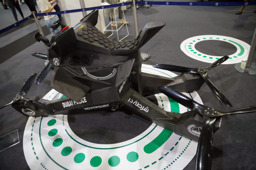 • Hoverbike: ตำรวจดูไบใช้ Hoverbike หรือมอเตอร์ไซค์บินได้ รองรับเหตุฉุกเฉินที่เกิดขึ้น มอเตอร์ไซค์เหล่านี้ยังมีกล้องช่วยจดจำผู้คนและระบุเหตุการณ์ที่น่าสงสัยด้วย