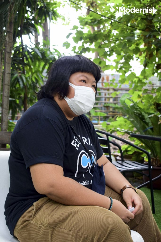 ‘พี่เรียกตัวเองว่าเป็นคนทำงานสังคมคนหนึ่ง ที่หลักๆ ก็ทำงานเรื่องเด็ก เยาวชนคนรุ่นใหม่ การศึกษาและการเรียนรู้ค่ะ’