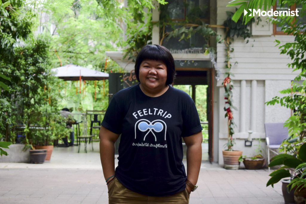 พี่คิดว่าเหนื่อยก็ดี บางทีน้องๆ มาทำงานก็จะเจอแรงปะทะเยอะ เพราะเราทำงานในพื้นที่ที่มีค่านิยมบางอย่างผูกติด มันต้องเจอแรงปะทะเสมอ แต่สิ่งที่เราคุยกันเสมอคือ ความรู้สึกเหนื่อยท้อสุขมันเป็นพื้นฐานมากๆ เลยที่ทุกคนต้องมี คุณจะเหนื่อยก็เหนื่อยไป จะทุกข์ก็ทุกข์ไป แต่ขอให้รู้ว่าตัวเองรู้สึกอย่างไรกับมันนะ ขอให้มีการทบทวนตัวเองเสมอ การทบทวนตัวเองมันคือเดินทางไกลของตัวเอง การเดินทางเพื่อจะทบทวนตัวเอง เรียนรู้ตัวเอง และค้นพบตัวเองเสมอ ทุกครั้งที่พี่เหนื่อยมันก็วนกลับมาที่โจทย์นี้ว่าพี่ทำสิ่งนี้ทำไม อยากทำอยู่ไหม รู้สึกอยู่ไหม ถ้ารู้สึกอยู่ก็จะไปต่อกับมัน และมันก็เป็นวงจรที่ Feel Trip เชื่อมาเสมอ และทุกการเหนื่อยในปัญหานั้นๆ มันมีโจทย์ของการแก้ปัญหาเสมอ