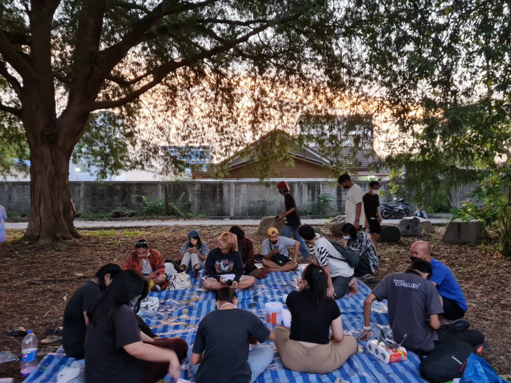 สี่-Lab มันคือกิจกรรมภายในที่เติมความรู้ เติมเครื่องมือและทักษะให้กับคณะทำงาน สมมุติน้องคนหนึ่งอยู่กับเรามาตั้งแต่ปีหนึ่งจนตอนนี้เรียนจบ และเริ่มทำงาน เริ่มไปเจอโลกที่มันต้องเสียภาษี บางคนก็จะงงว่าเสียภาษีคืออะไรวะ เราก็ชวนกันทำเวิร์คช็อป ‘เสียภาษี 101’ อะไรแบบนั้น หรืออาจจะมี Lab เล็กๆ ที่ชวนไปเรียนรู้กับภาคีอื่นๆ พื้นที่อื่นที่เขาทำอยู่แต่เราไม่ได้ทำ อย่างเช่น ‘ใบไม้เปลี่ยนเมือง’ ที่เอาใบจากมาทำจานกระดาษ หรือไปดู ‘อุตรดิตถ์ติดยิ้ม’ ที่เป็นพื้นที่เล่น ที่เที่ยวทั้งจังหวัด