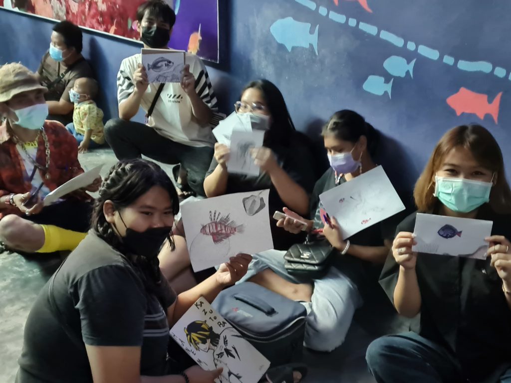 ตอนนี้ Feel Trip มีอยู่ 4 กิจกรรม คือ หนึ่ง-Action Project คือกิจกรรมของน้องๆ ใน Feel Trip บางคนที่เลือกจะกลับบ้าน หรือทำงานในพื้นที่ของเขา อย่างเช่น ‘แปลงผักนุ้ยนุ้ย’ โปรเจกต์ที่ต้องการสร้างพื้นที่สีเขียวในระดับครัวเรือนและชุมชนที่จังหวัดกระบี่ เพื่อให้ผู้คนสามารถอาศัยอยู่ได้ในช่วงโควิด