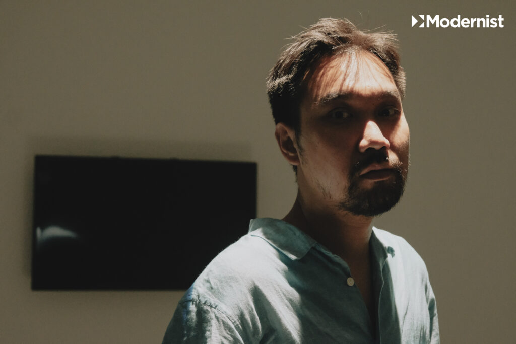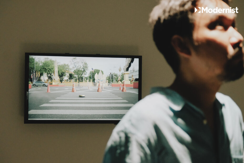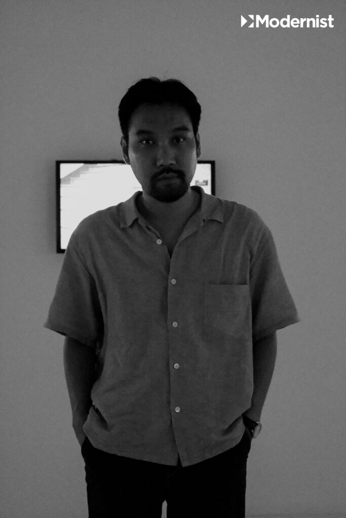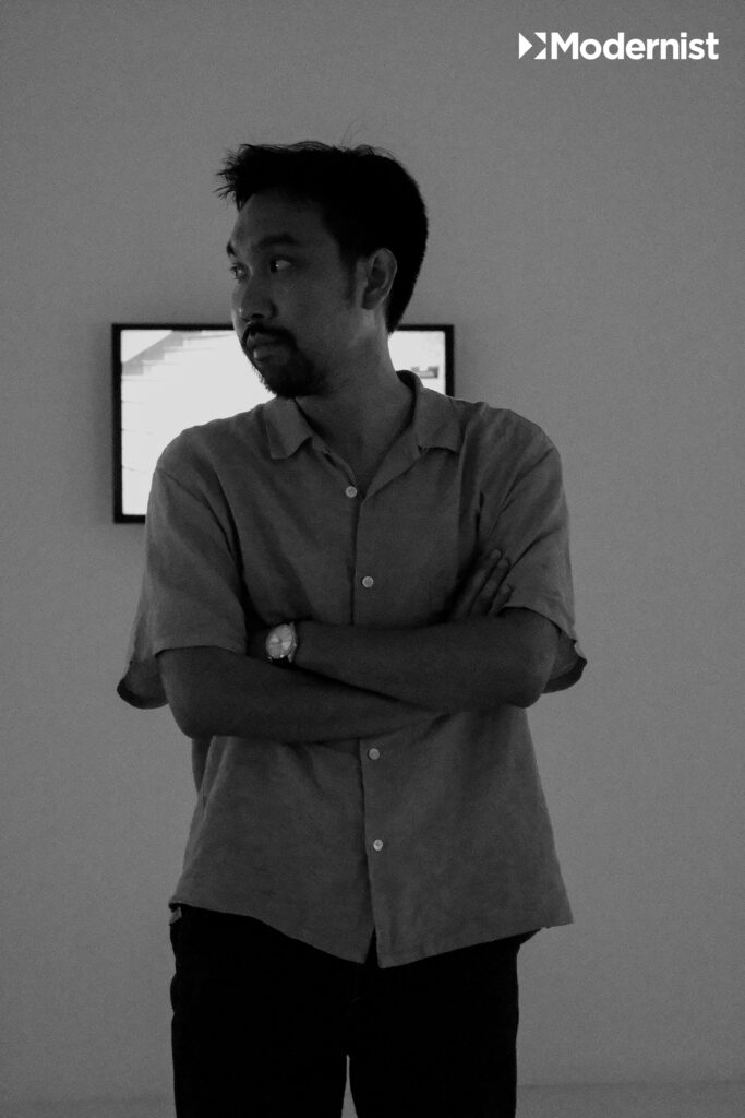 “ไม่ได้คิดครับ ไม่ได้คิดว่ามันจะต้องเป็นแบบไหน สำหรับเรามันคือคิดแค่ว่าจะทำอะไรออกมา หลักๆ แค่ออกแบบประสบการณ์มากกว่า คืองานของเราไม่ใช่งานสวยงาม แต่เราอยากสร้างประสบการณ์ในเรื่องสั้นของเรา อย่างคุณอาจเคยอ่านเรื่องสั้นของเรามาก่อน แล้วก็ได้ขึ้นไปดูบนฝ้านั้นว่ามีอะไร มันคือประสบการณ์ เช่นเดียวกับในห้องฝ่าละออง ข้างในมันจะมีห้องสองชั้น เปิดเข้าไปมันก็จะเป็นห้องมืดๆ ที่มีทีวีล้อม แล้วมันก็จะเล่าเรื่องไปเรื่อยๆ ผ่านโทรทัศน์ เราคิดว่ามันเป็กนประสบการณ์แบบนึง ที่เหมือนเราจะถูกดูดอยู่ในเรื่องสั้นนั้น”