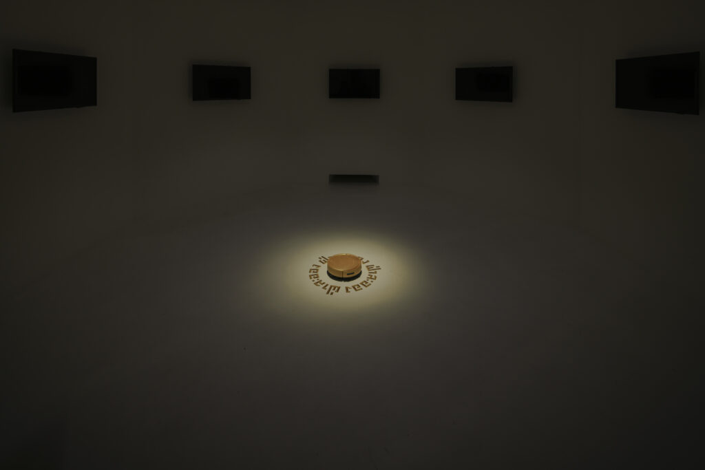 แกนหลักของฝ่าละอองอยู่ตรงส่วนภาพเคลื่อนไหว 6 จอ (ถ่ายและตัดต่อโดย ปาณิศา เขื่อนเพชร) พร้อมเสียงบรรยายจากเมฆ’ครึ่งฟ้าและเสียงพากย์จากกูเกิล คล้ายเป็นงานหนังสารคดีตามติดชีวิต ‘O-Robot’ หุ่นยนต์เครื่องดูดฝุ่นทรงกลมสีทองเรืองรอง ที่ได้รับมอบหมายให้ดูดฝุ่นตามสถานที่ๆ เชื่อมโยงกับขบวนการประชาธิปไตยไทย เช่น ลานพระราชวังดุสิตที่เคยเป็นจุดวางหมุดคณะราษฎร, แยกราชประสงค์และวัดปทุมวนารามที่เคยเป็นสถานที่ล้อมปราบคนเสื้อแดงในปี 2553, จวบจนแหล่งที่ตั้งเก่าของอนุสาวรีย์พิทักษ์รัฐธรรมนูญ ที่ตอนนี้กลายเป็นสถานีรถไฟฟ้าไปเสียแล้ว ซึ่งขณะที่ฝุ่นกำลังถูกดูดหายไปนั้น ก็ราวกับว่าความทรงจำในพื้นที่นั้นถูกทำให้หายไปด้วยเช่นกัน