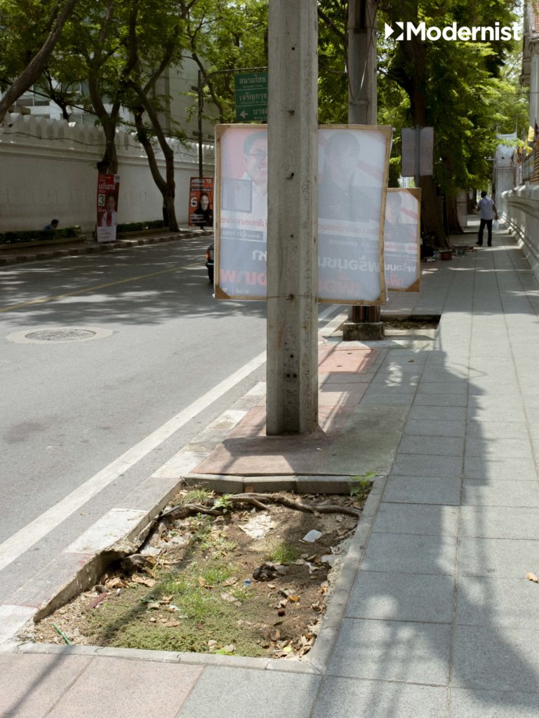 จากที่เราเห็นๆ กัน ไม่ว่าจะเสาไฟล้ม สายไฟพาดรุงรัง หรือขยะเกลื่อนกลาดเต็มทาง ล้วนเกิดขึ้นบนถนนและทางเท้าทั้งสิ้น ซ้ำร้ายที่ ‘ทางเท้า’ ก็เผชิญกับปัญหาของตัวอยู่เช่นกัน ไม่ว่าจะเป็นพื้นทางเดินไม่สม่ำเสมอ มีร่องให้น้ำขัง พื้นยุบ มีสิ่งกีดขวางมากมาย รถมอเตอร์ไซค์ขับขึ้นฟุตปาธ กระทั่งการออกแบบที่ไม่เอื้อต่อผู้ที่มีความพิการ แต่กลับไม่มีเรื่อง ‘การพัฒนาทางเท้า’ ในแผนพัฒนากรุงเทพฯ เลย กว่ากรุงเทพฯ จะตื่นตัวในประเด็นทางเท้า ก็ปาเข้าไปช่วงแผนพัฒนากรุงเทพระยะ 20 ปี (ปีพ.ศ.2556-2575) ในยุคที่สุขุมพันธุ์ บริพัตร นั่งเก้าอี้ผู้ว่าฯ ซึ่งจากปีแรกของแผนพัฒนาฯ จน ณ วันนี้ ก็เป็นเวลาเกือบ 10 ปี ที่ดูเหมือนว่า ‘ทางเท้า’ จะไม่ได้พาเราเดินไปไหนได้เลย