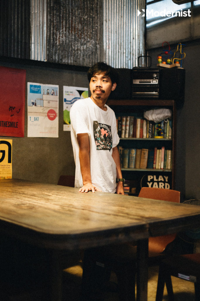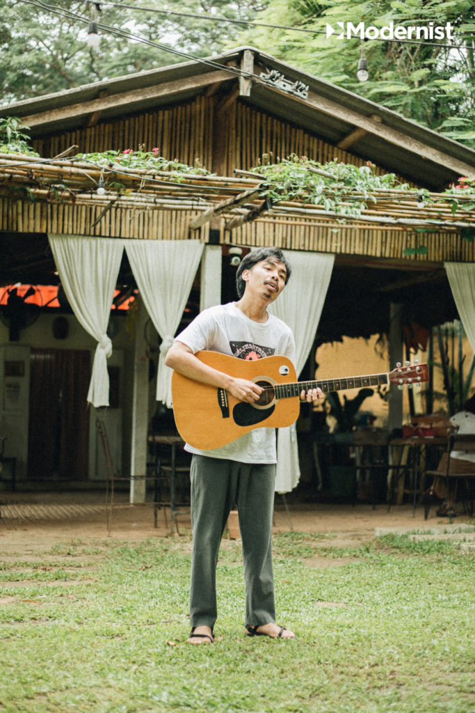 “แต่ผมก็ไม่ค่อยเก่งเรื่องทฤษฎีดนตรีอยู่แล้ว เพราะผมก็งูๆ ปลาๆ มาตั้งแต่แรก ให้ไปเล่นแข่งโซโล่อะไรผมก็ไม่มีพื้นฐานอะไรพวกนี้ ผมใช้พื้นฐานศิลปะมาทำงาน แล้วก็มันพาเดินทางได้ก็ถือว่าโอเคแล้ว”