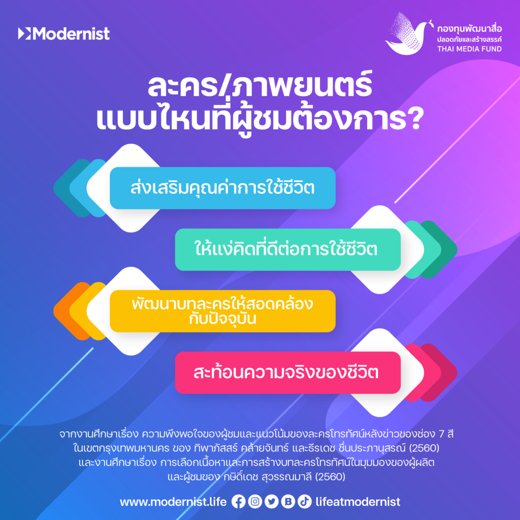 ถึงเวลาแล้วหรือยังที่ละคร/ภาพยนตร์ไทย จะเปลี่ยนทิศทางการนำเสนอเรื่องราวใหม่ มากกว่าการสะท้อนแง่มุมความรัก และความสัมพันธ์ที่เกี่ยวข้องกับครอบครัว โดยเสริมเพิ่มเติมคุณค่าและประโยชน์เข้าไปในเนื้อหาของบทละคร นอกจากละครจะให้ความบันเทิง แต่ควรเพิ่มข้อคิดในการใช้ชีวิตเป็นสิ่งที่ผู้ชมควรได้รับจากการรับชมละคร
