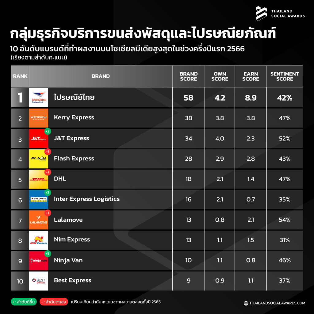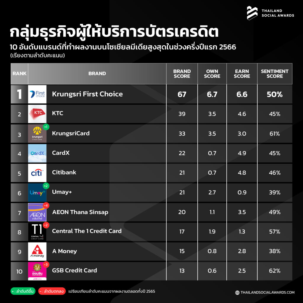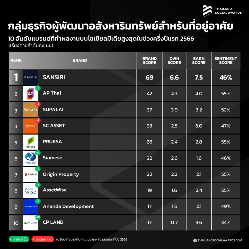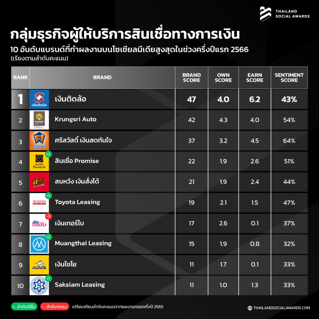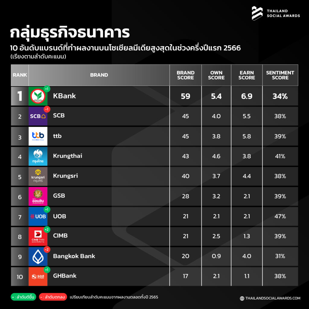โดย 10 อันดับแบรนด์ 29 กลุ่มธุรกิจ ที่ทำผลงานสูงสุดบนโลกโซเชียลครึ่งแรกของปี 2566 (ตั้งแต่วันที่ 1 มกราคม – 30 มิถุนายน 2566) มีดังนี้