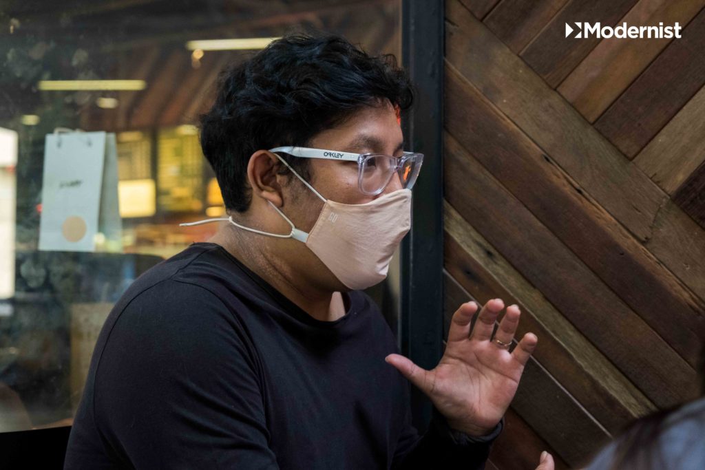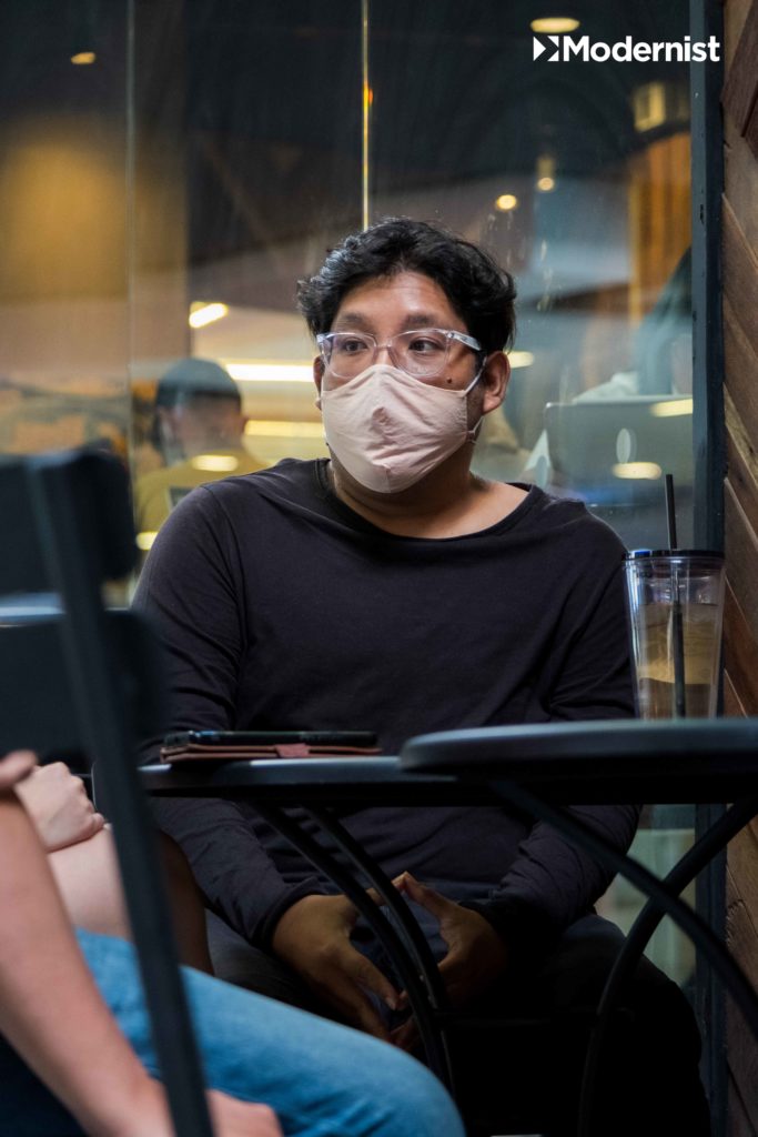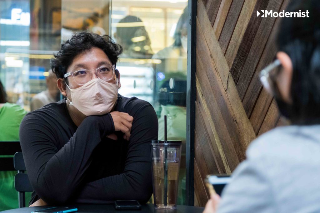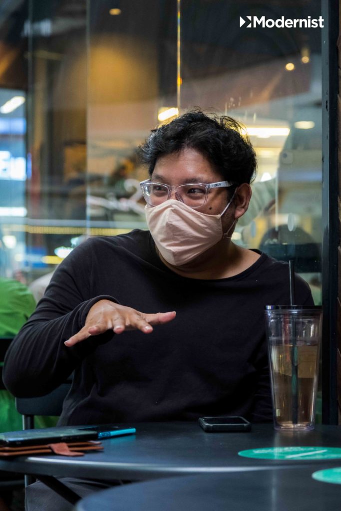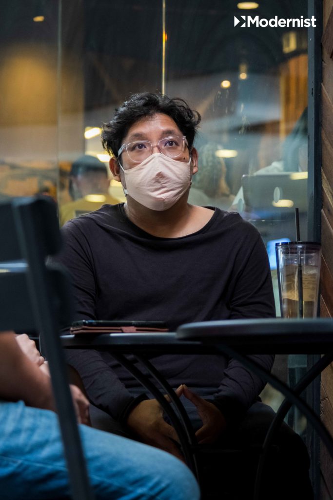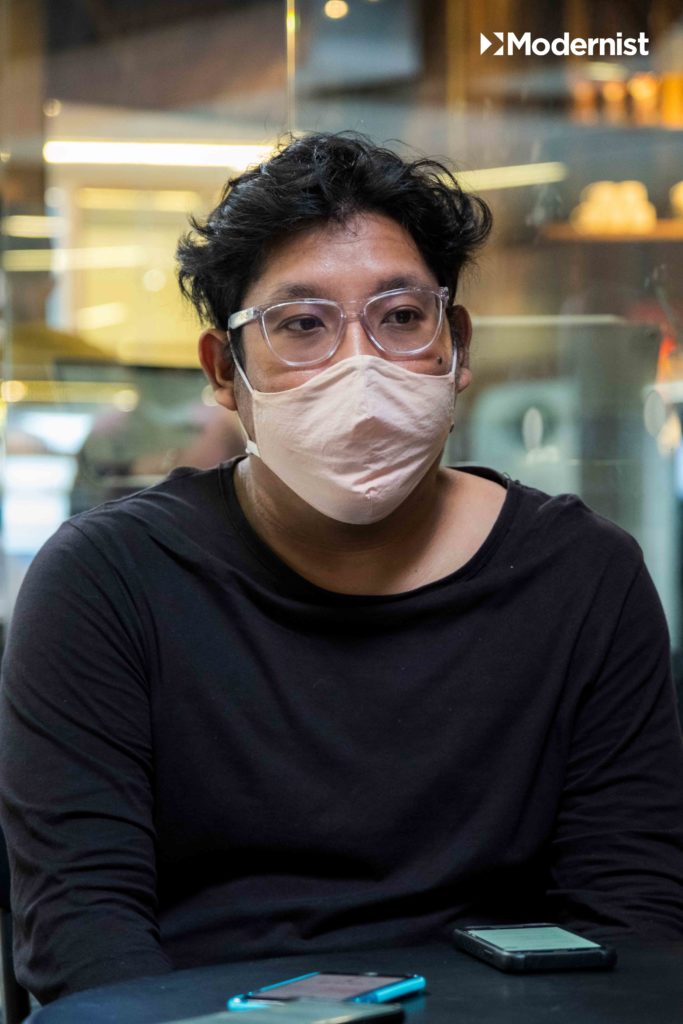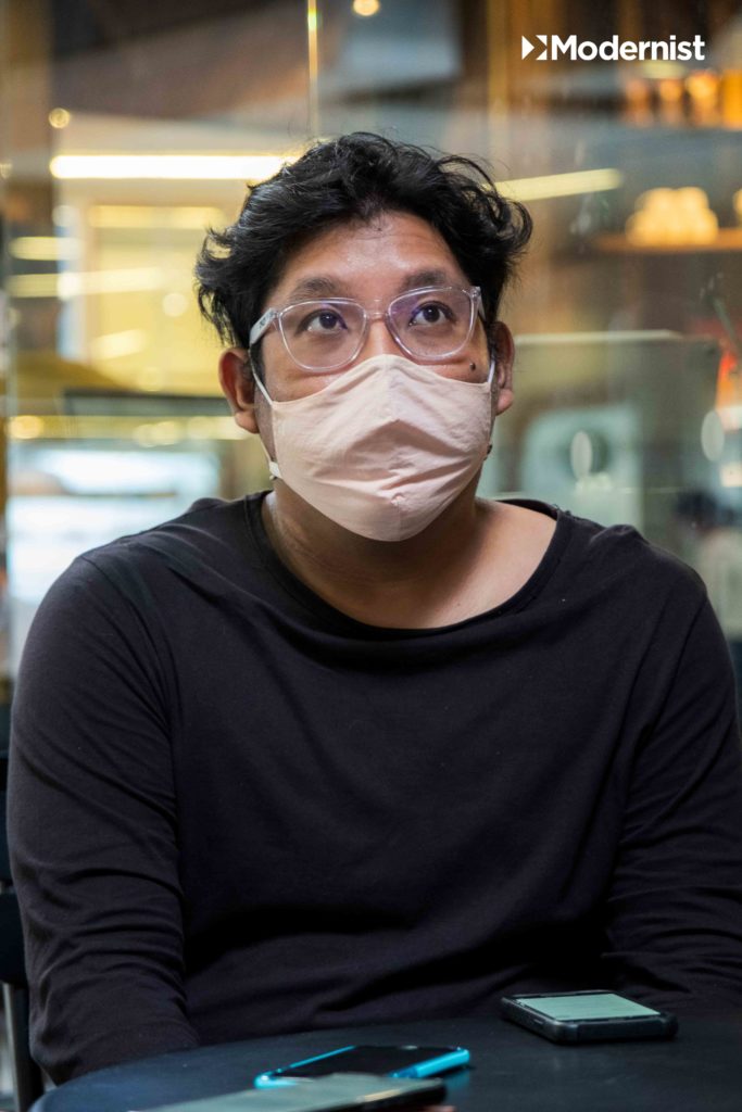“เพิ่งเจอมาเป็นครั้งแรกเลยครับ ปีนี้นี่แหละ คือเป็นปีที่เราต่างรู้ว่าเรามีโควิด เรามีโรคอะไรต่างๆที่ทำให้ต้อง Social Distancing แล้วบางครั้งการสร้างงานหรือการทำเพลง หรือแม้แต่งานศิลปะหลายๆชิ้นน่ะ มันจำเป็นที่จะต้องออกไปหา ออกไปเจอ ออกไปค้นพบ ผมเชื่อในเรื่องของการแลกเปลี่ยน การแลกเปลี่ยนอะไรบางอย่าง หรือแม้แต่แลกเปลี่ยนความรู้สึก คือคนหนึ่งคนเจอคนอีกหนึ่งคนรู้สึกอย่างไร งานศิลปะหลายๆแบบตั้งอยู่บนพื้นฐานของความรู้สึกถ้าถามผมนะ ไม่ว่ามันจะมีเรื่องของหลักการหรืออะไรก็แล้วแต่ แต่พอมันถูกจำกัดตรงนี้น่ะ เราไม่ได้ไปหาข้อมูลอื่นๆเพิ่มเติมในแง่ของกายภาพ ผมก็เลยคิดงานไม่ออก เขียนงานไม่ได้ แต่ถ้าถามว่าผ่านไปยังไง ก็คือคงต้องพัก หรือไม่ก็ไปทำอะไรอย่างอื่นเพื่อรีเฟรชตัวเองให้ได้ครับ”