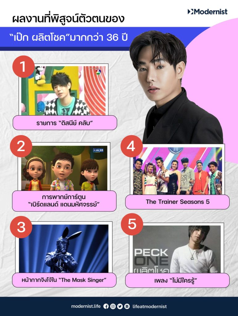 9 สิงหาคม 2564 ถือว่าเป็นอีกปีหนึ่งที่เหล่านุชพร้อมใจกันอวยพรวันเกิดให้กับ “เป๊ก ผลิตโชค” เจ้าของด้อมที่ได้พิสูจน์บทบาทที่หลากหลายในการทำงานในวงการบันเทิงมามากพอสมควร ทั้งพิธีกร นักร้อง และพากย์การ์ตูน ซึ่งในขวบปีที่ 36 นี้เขาก็ได้พิสูจน์ให้ทุกคนได้รู้แล้วว่าเขามีศักยภาพมากที่จะยืนหยัดในวงการบันเทิงต่อไป และยังคงพร้อมมอบรอยยิ้มให้กับแฟนคลับของเขาอยู่เสมอๆ Modernist จึงไม่รอช้าขอจัด 5 อันดับผลงานที่พิสูจน์ตัวตนของผู้ชายคนนี้มาฝากกัน