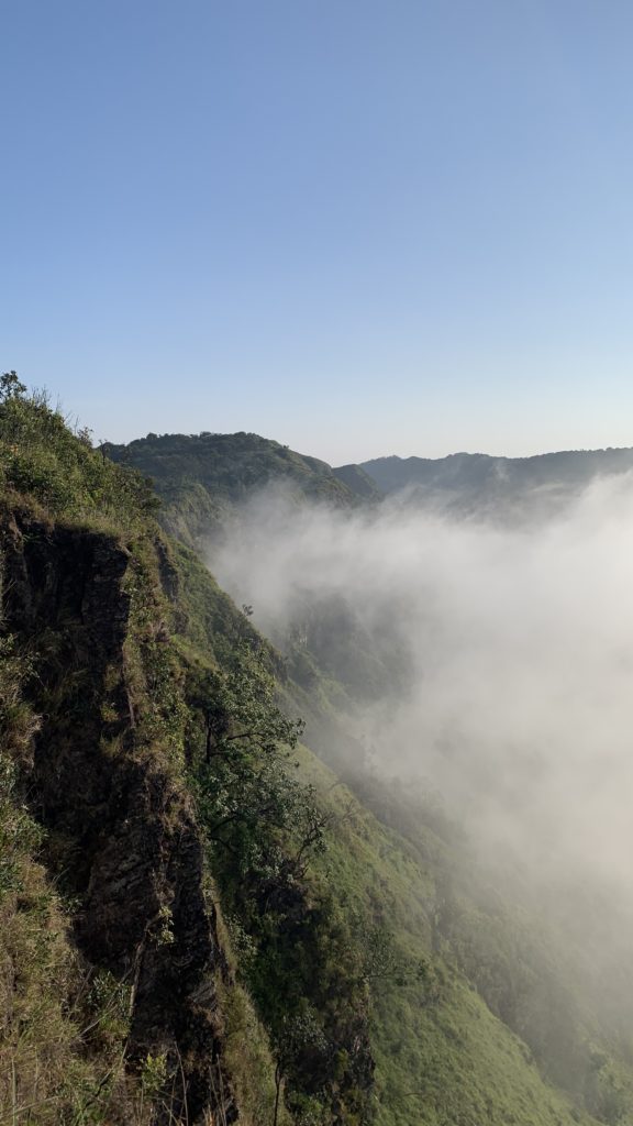 มองอยู่ตรงลานกางเต้นท์ อาจจะไม่หนำใจเท่ากับ เราเดินขึ้นไปบนสันหนอกวัวเล็กด้วยตัวเอง จุดที่เราขึ้นไปยืนนั้น เราจะเห็นวิวจากมุมสูงที่สุดของภูเขาในกาญจนบุรี ที่วิวสวยมาก และสามารถมองเห็นน้ำตกผาแตก เขาช้างเผือก และเขื่อนวชิราลงกรณ์ ด้วยวิวแบบเวรี่กู้ด! แน่นอนว่ามีทะเลหมอกให้เห็นด้วย