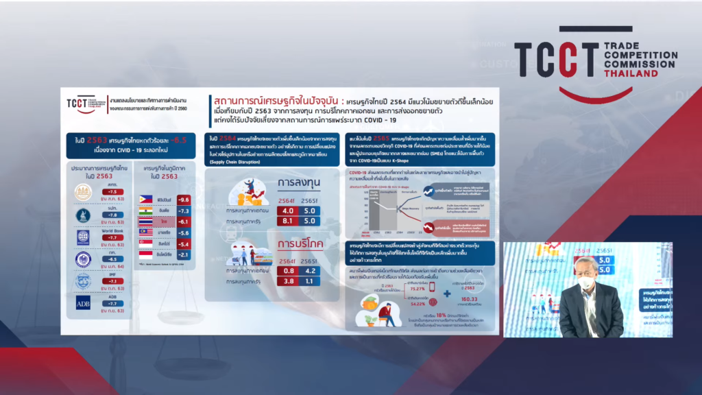 สำนักงานคณะกรรมการการแข่งขันทางการค้า (สำนักงาน กขค.) จัดงานแถลงนโยบายและทิศทางการดำเนินงานในการกำกับดูแลการแข่งขันทางการค้าของ สำนักงาน กขค. ประจำปี พ.ศ. 2565 สู่บทบาทใหม่ “Trade Competition Commission of Thailand” (TCCT) วันพฤหัสบดีที่ 24 กุมภาพันธ์ 2565 ณ ห้องอินฟินิตี้บอลรูม โรงแรมพูลแมน คิงเพาเวอร์กรุงเทพ และทาง Zoom Meeting