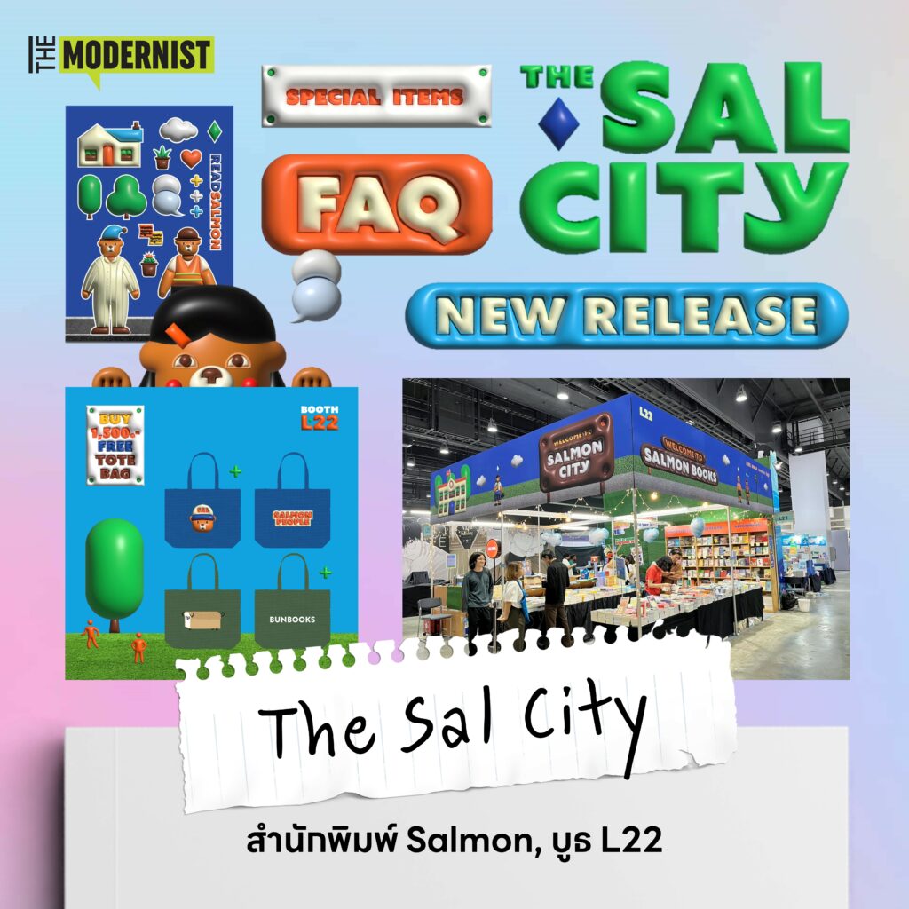 ปีนี้ ‘Salmon Books’ มาในแนวน่ารัก ๆ อย่างธีม ‘The Sal City’ เมืองแห่งหนังสือหลากรสชาติที่จะมาเติมเต็มการอ่านของนักอ่านให้สนุกขึ้น ผ่านเจ้าเมืองสุดน่ารักอย่าง ‘คุณกริซแซลลี’ คุณหมีเสื้อสีส้มใส่หมวกแก๊ปที่รอต้อนรับพลเมืองแซลซิตี้ทุกคน