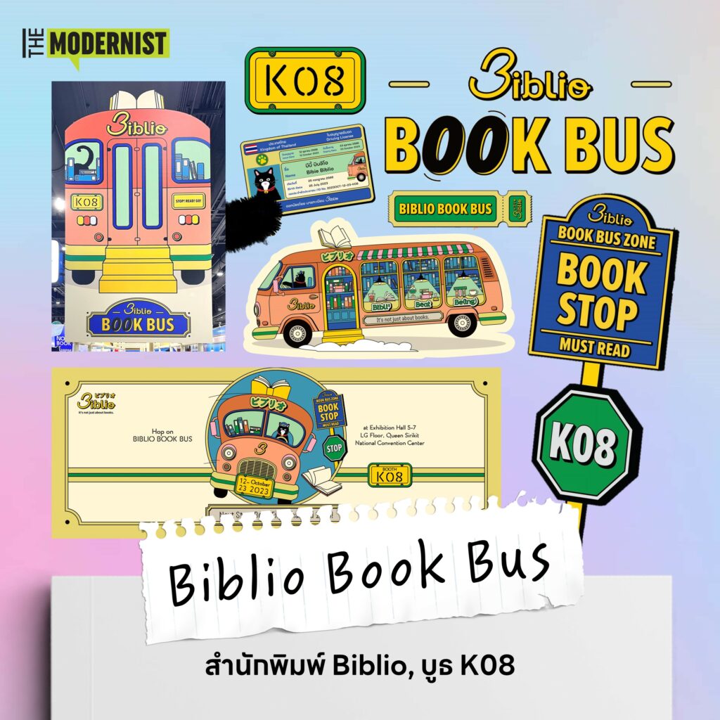 ทางฝั่งสำนักพิมพ์ที่มีความเป็นวัยรุ่นใกล้เคียงกันอย่าง ‘Biblio’ ก็นำเสนอตัวตนของตัวเองออกมาได้อย่างน่ารักลงตัวเหมือนกัน กับธีม ‘Biblio Book Bus’ ที่หยิบเอาบรรยากาศความ Nostalgia มาเป็นกลิ่น จากการนำเอาไอเดียหลักของ ‘book bus’ หรือรถหนังสือมาขยายความให้น่าสนใจกับอุตสาหกรรมหนังสือไทยยุคนี้
