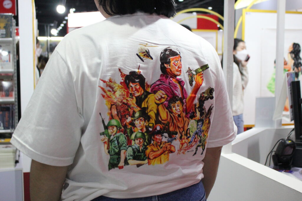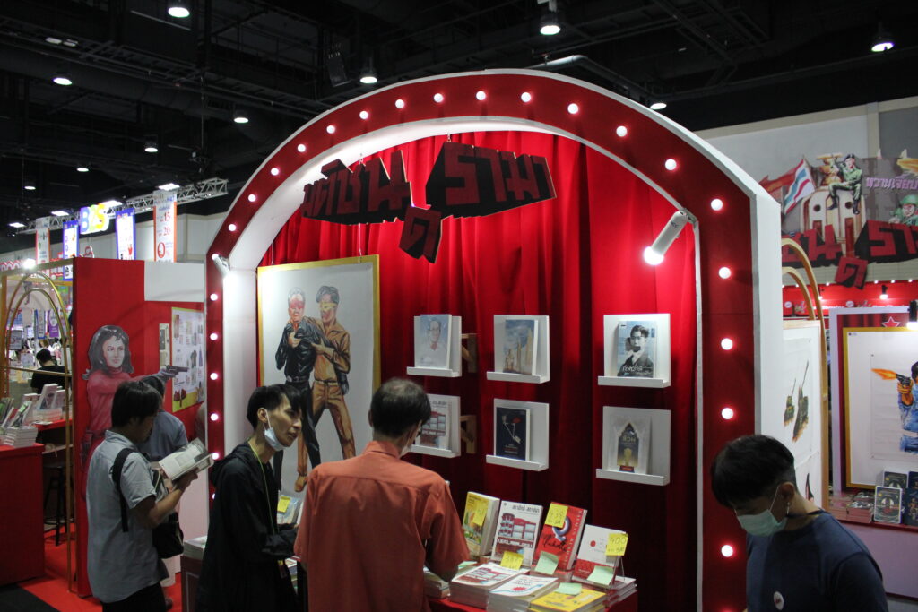 กลิ่นอายงานอาร์ตยุคนั้นโอบล้อมบรรยากาศในบูธ และหน้าตาของเพจสำนักพิมพ์มติชนไว้ได้อยู่หมัด ทั้งการออกแบบภาพประกอบที่รวมเอาจุดเด่นของภาพยนตร์ยุคนั้นกว่า 20-30 เรื่องมารวมเข้าไว้ด้วยกัน เพื่อแสดงให้เห็นว่าในบูทสำนักพิมพ์นี้มีเรื่องราวจากผู้คนหลากหลายไม่ต่างจากตัวละครในภาพยนตร์คลาสสิกเหล่านี้ ทั้งพระเอก ผู้ร้าย ตัวโกง มือปืน อันธพาล มาเฟีย ตลก ดาวยั่ว