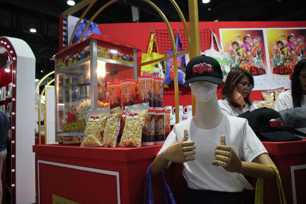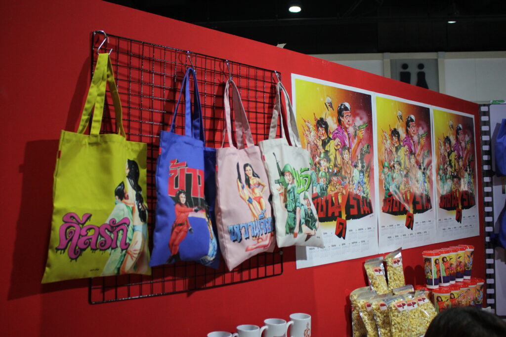 และที่ไม่กล่าวถึงไม่ได้เลยคือของแถมจากบูธ หากซื้อสินค้าได้ครบยอดที่กำหนดไว้ก็จะได้ของแถมพรีเมียมน่าสะสมมากมาย ที่ใช้งานอาร์ตยุคภาพยนตร์คลาสสิกผสมกับเหตุการณ์ในยุคปัจจุบัน ทั้งคำว่า “ดีลรัก” “ข้ามขั้ว” “หวานเจี๊ยบ” “เพ้อเจ้อ” “อยู่เป็น” “อย่าหิวแสง” “กรี๊ดสิครับกรี๊ด” ที่ถูกออกแบบเหมือนโลโก้ภาพยนตร์ในใบปิด และถูกนำไปนำเป็นลายเสื้อ ลายกระเป๋า Tote bag แก้วมัก และหมวกแก็ป ก็ยั่วล้อสังคมได้อย่างสวยงามจนไม่ว่าใครเห็นแล้วก็อยากครอบครอง