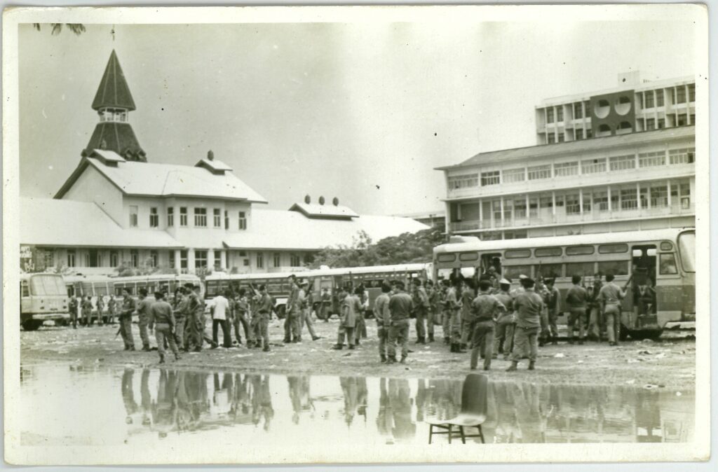 นับแต่เสียงปืนนัดแรกดังขึ้น ท้องฟ้าเหนือมหาวิทยาลัยธรรมศาสตร์ ท่าพระจันทร์คลุ้งไปด้วยควันปืนและคาวเลือด จนจางลงพร้อมกับการรัฐประหารที่เกิดขึ้นในเวลา 18.00 น. ของวันนั้น